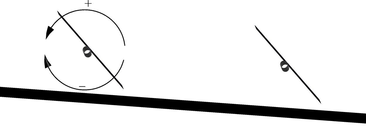The ground slope itself is always positive, but the component of the slope perpendicular to the tracker axes can be positive or negative. The convention for the cross-axis slope angle follows the right-hand rule: align the right-hand thumb along the tracker axis in the direction of the axis azimuth and the fingers curl towards positive angles. So in this example, with the axis azimuth coming out of the page, an east-facing, downward slope is a negative rotation from horizontal: