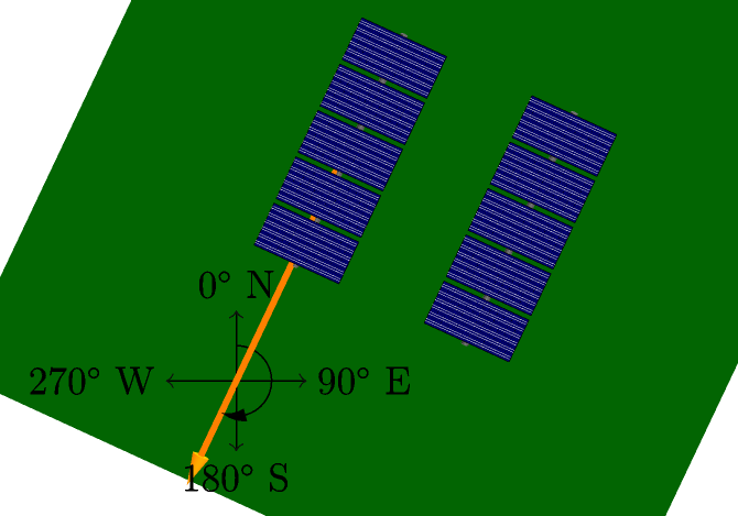 axis_azimuth=180, # N-S axis, azimuth facing south