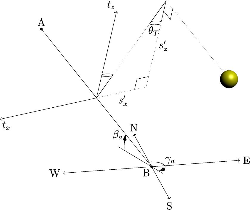 Fig. 5, [1]: Solar coordinates projection onto tracker rotation plane.#
